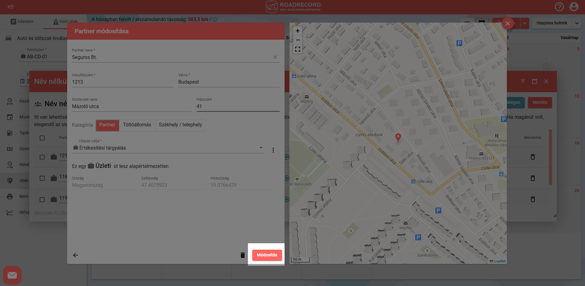 A címre kattintva pontosíthatod a partnert közeli helyek (POI-k) alapján: